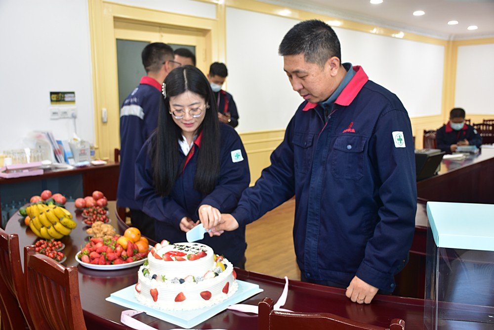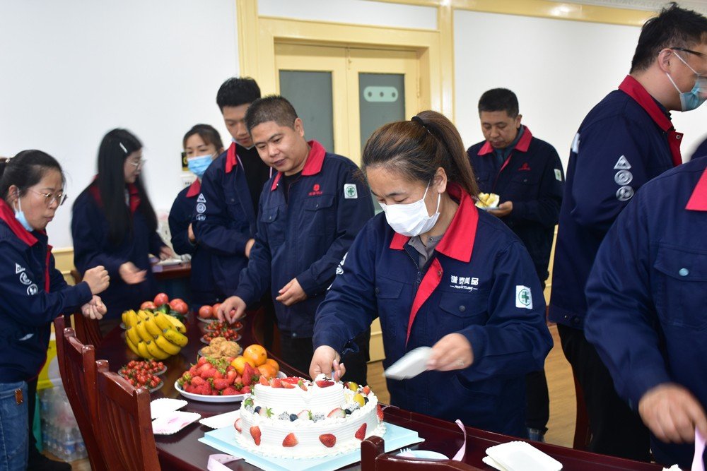 發(fā)言結(jié)束,李總為新官網(wǎng)搭建工作小組成員獻(xiàn)上花束,并與小組成員共切蛋糕,宣告新版官網(wǎng)正式上線,并邀請(qǐng)?jiān)趫?chǎng)全體同事一起品嘗,共同分享這份喜悅。