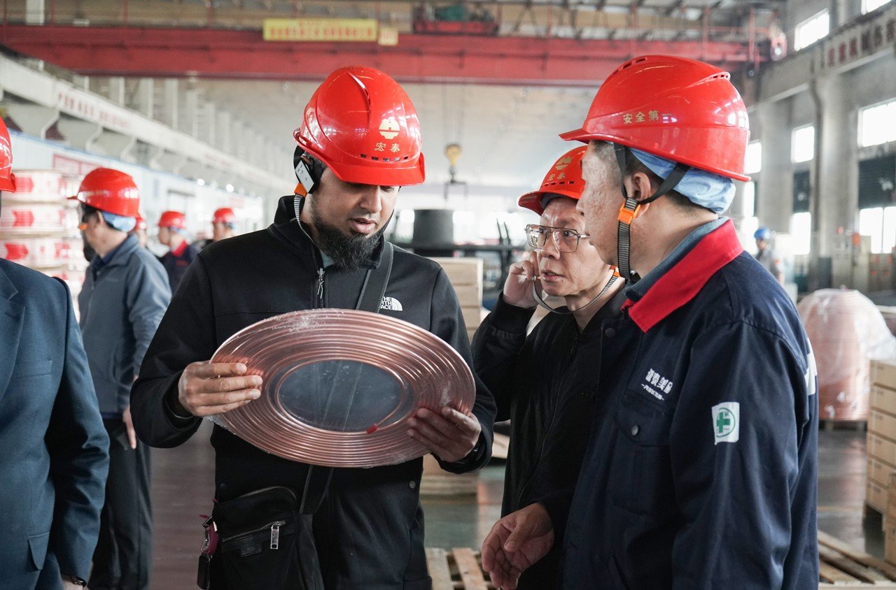 馬來西亞政府訪問團在實際考察后,了解了宏泰的發(fā)展實力及生產銅管的優(yōu)勢,對宏泰公司和產品給予了充分的肯定,并表現出濃厚的興趣,盛情邀請公司高層到馬來西亞參觀考察,雙方就未來合作進行了深入溝通交流。