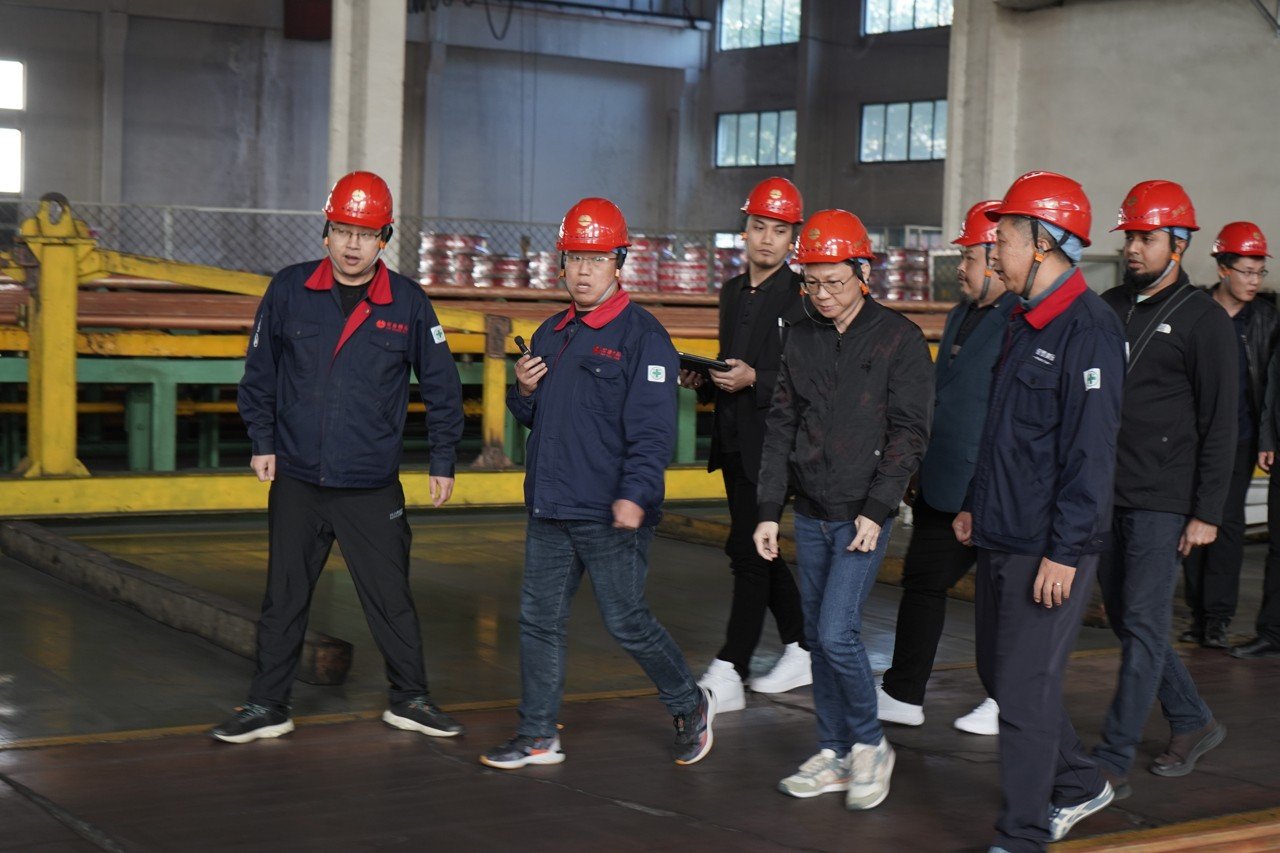 2023年11月8日,青島鑫光正鋼結構有限公司領導攜馬來西亞政府訪問團到宏泰參觀考察。公司董事長兼總經理李福鵬、總經辦主任呂翠剛等人陪同其參觀了青島宏泰金屬制品有限公司及正在建設中的新車間。